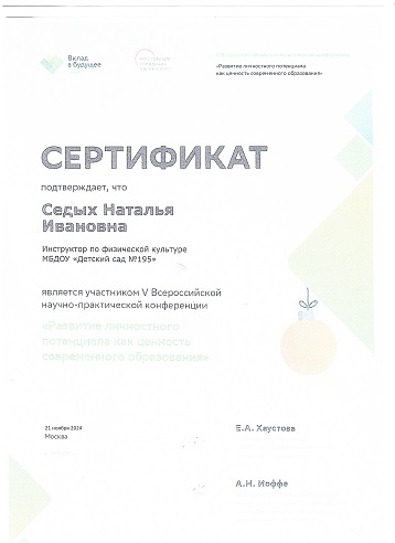 Седых Наталья Ивановна, инстркуктор по физической культуре